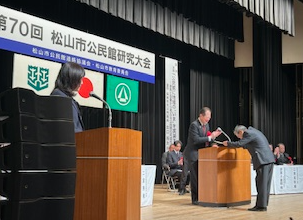 1月31日(土)午前中に松山市市民会館中ホールにて、第70回松山市公民館研究大会が行われました。