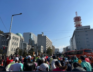 2月1日(日)第63回愛媛マラソンが開催されました。伊予路を約1万1千人が駆け抜けました。スタート地点には、地元北条の土佐玲子さんとメダリストの高橋尚子さんらが見送ってくださいました。